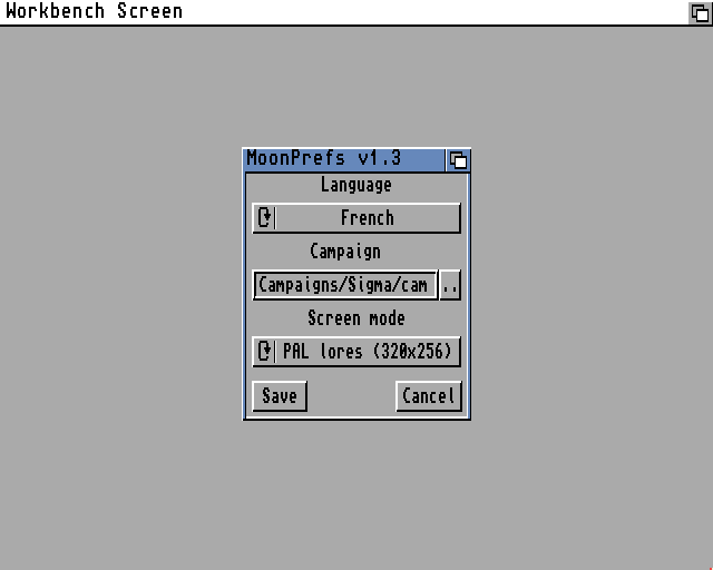 Moonbases est un jeu de type RTS sortit sur Amiga en 1999. Il a pour avantage de fonctionner sur des configurations assez modestes (A1200 + 1Mo de fast et disque dur) et d’être compatible RTG pour pousser l’affichage en 640×470 si vous avez une carte graphique sur votre Amiga. Il existait déjà dans plusieurs langues mais à priori personne ne s’était jusqu’alors penché sur une traduction en français. C’est en tout cas le constat que semble avoir fait Aladin avant de décider de se lancer dans cette adaptation en français.