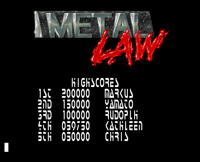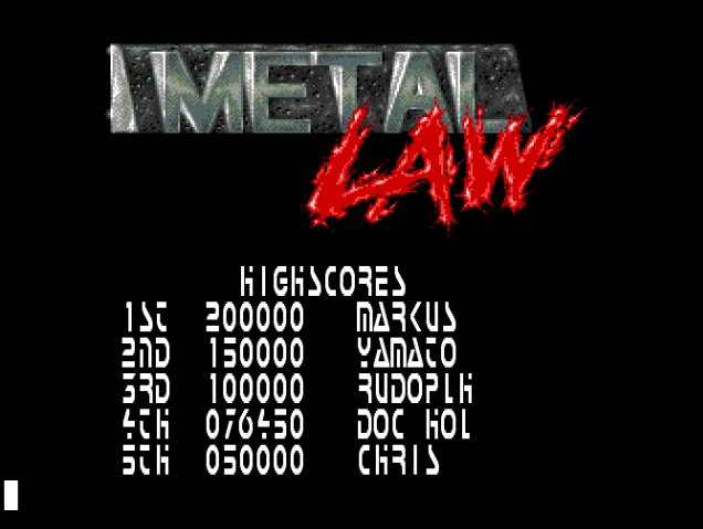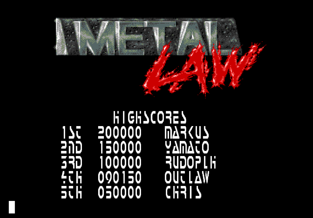 Metal Law est un jeu de plate-formes et d’action réalisé en 1992 par le label allemand New Bits On The Ram. Il n’existe que sur Amiga, et en tant que petite production, a été distribué seulement en Allemagne. N’ayant signé qu’un seul autre jeu (Quik and Silva), ce label éphémère est surtout connu pour avoir compté parmi ses membres Frank Matzke (graphiste) et Chris Hülsbeck (musicien). À la même époque, ce duo était impliqué dans les jeux du label K.A.I.K.O. (Apidya, Gem’X) et officiait également chez le développeur Factor5. On ne peut que constater des similitudes entre le jeu qui nous occupe et le troisième et dernier épisode de Turrican, développé en parallèle, et publié en 1993.