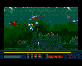 Ce jeu de type Shoot’em up, développé par Arc Developments et édité en 1990 sur Amiga par Rainbow Arts, nous offre une alternative plutôt différente du classique vaisseau spatial parti luter contre des méchants aliens … Ici vous piloterez « Deep Star », un sous-marin de guerre dernier cris dans le but de … repousser des extraterrestres … Oui parce qu’il ne faudrait quand même pas oublier la base d’un bon Shoot’Em Up. Nos ennemis de l’espace arrivent donc tout droit d’Alpha Centauri et sont venus sur terre pour conquérir nos océans.