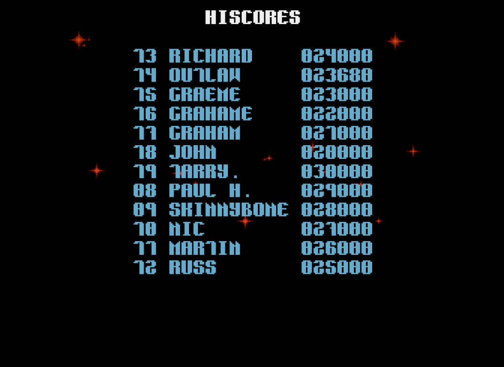 D’ailleurs rien d’obligatoire hein, mais une fois votre score enregistré, si vous attendez un peu, tout le HOF va défiler et vous obtiendrez cet écran avec votre dernier score en surbrillance.