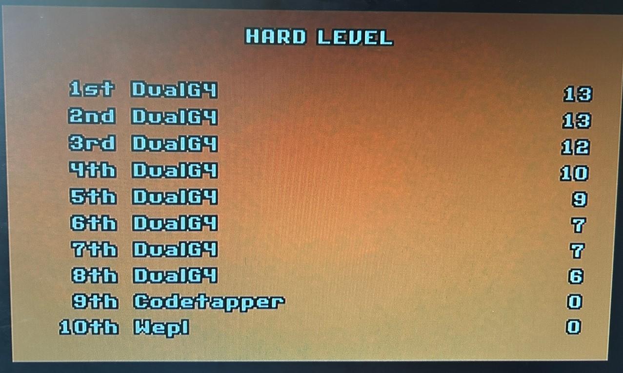 Excellent dualg4, je vais essayer d’atteindre les plus de 100 points, on ne sais jamais, voila 1 an que je n’ai plus participé car, le fait d’insister a jouer pour encore et encore performer nos hi scores sur les jeux concours, a la longue ne te donne plus envie d’y rejouer et c’est dommage car ce sont de super jeux, bonne chance a tous. :-)