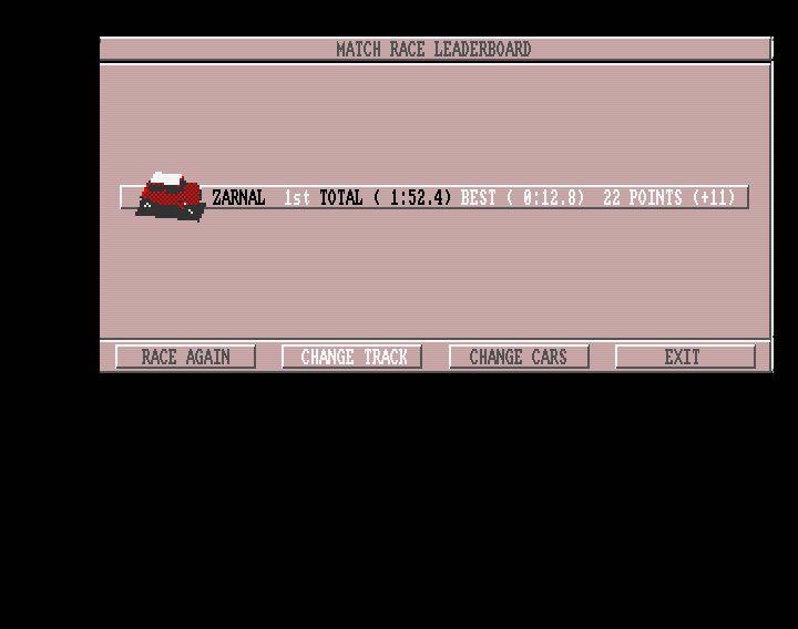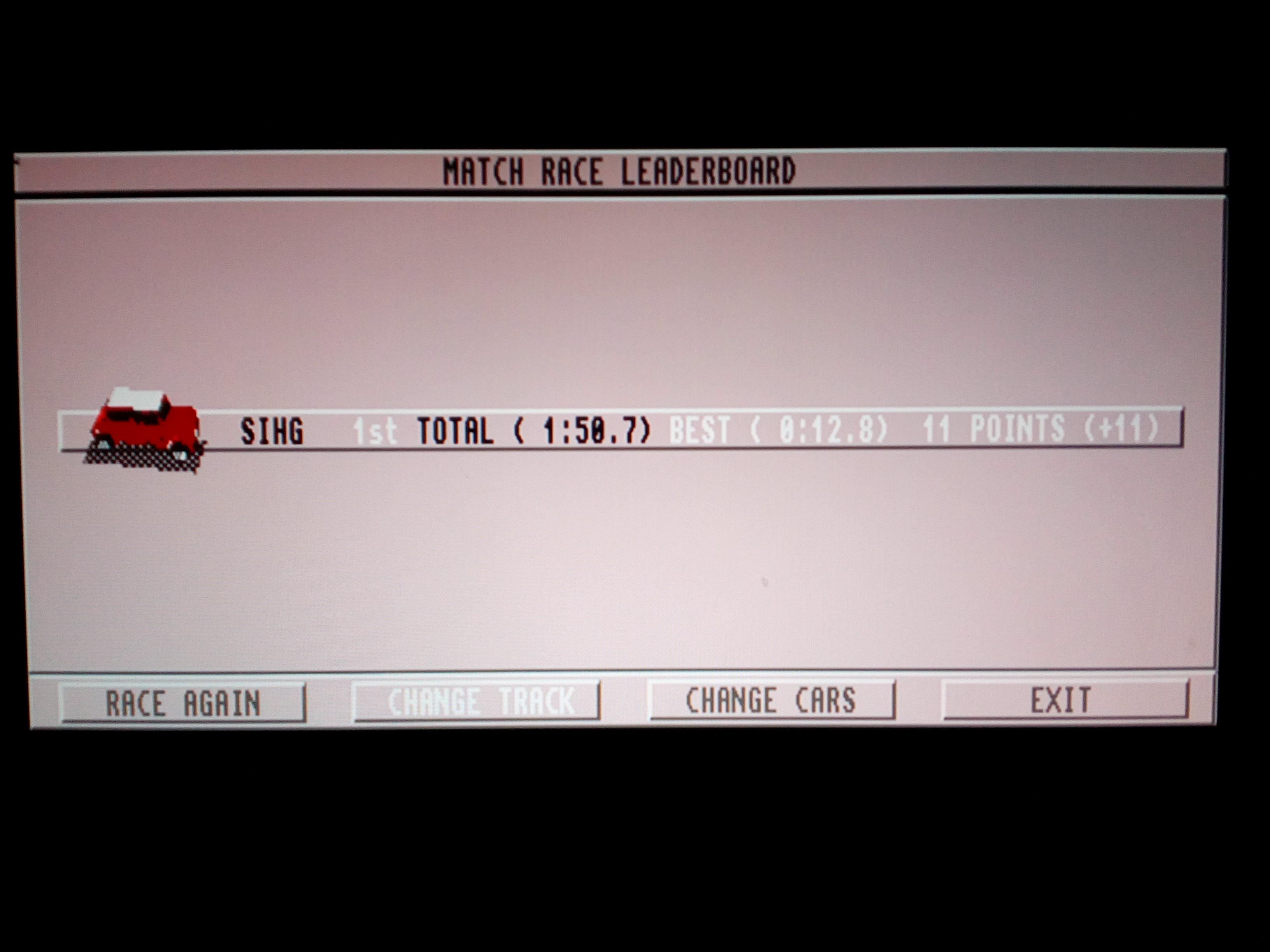 Cliquez ensuite sur START MATCH RACE. Dans le menu qui s’ouvre choisissez le circuit numéro 1 du TRACK DISK 2.