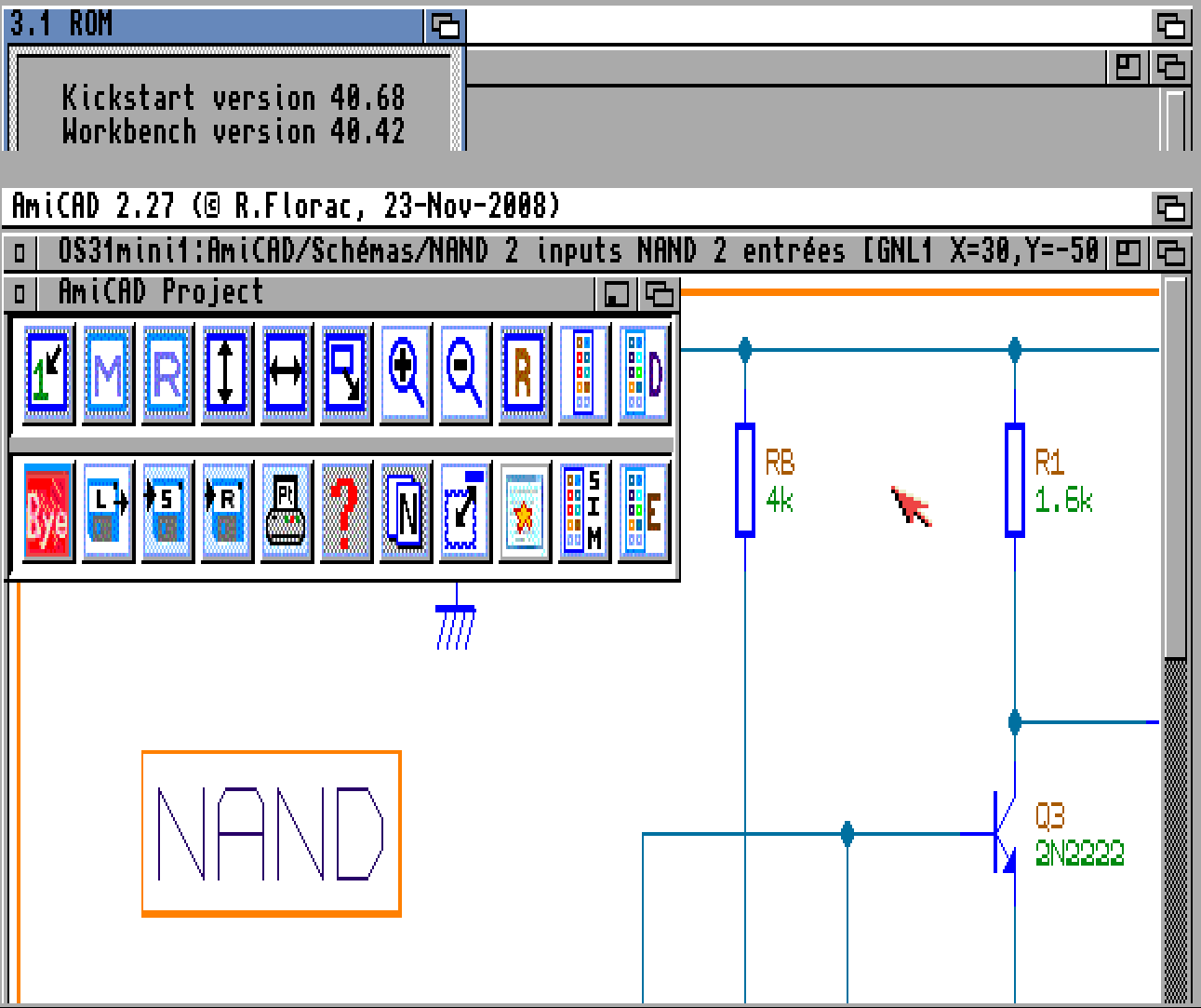 Il y a des datatypes manquants dans l’os3.1 pour amicad, il faudra les rajouter aussi à ton 3.1 (pour afficher la barre de projet). Pour tester rapidement j’ai juste copié l’ensemble de mon répertoire Classes\DataTypes\ de mon amikit-3.9