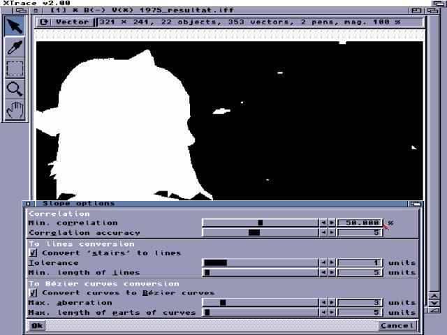 Video : 320*240 30 fps N/B 5 Mo en non compressé 2.27 Mo compressé. Des tests en vectoriel seront faits grace à X-Trace amiga. Le souci étant de savoir comment lire l’animation ainsi créee, je n’ai pas de routines pour.