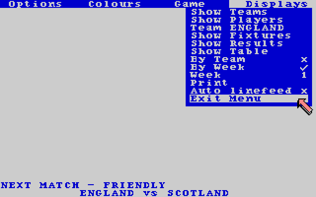 Les listes de matchs, les résultats et les classements peuvent être affichés à tout moment de la saison, et si vous avez un Commodore ou une imprimante compatible, vous pouvez même les imprimer pour les conserver.