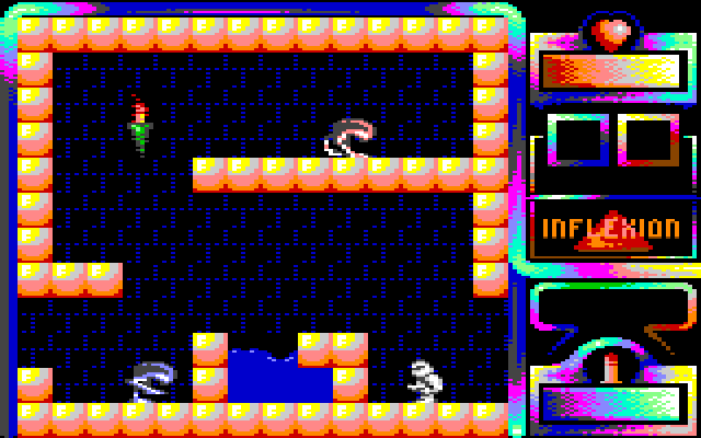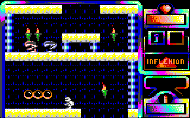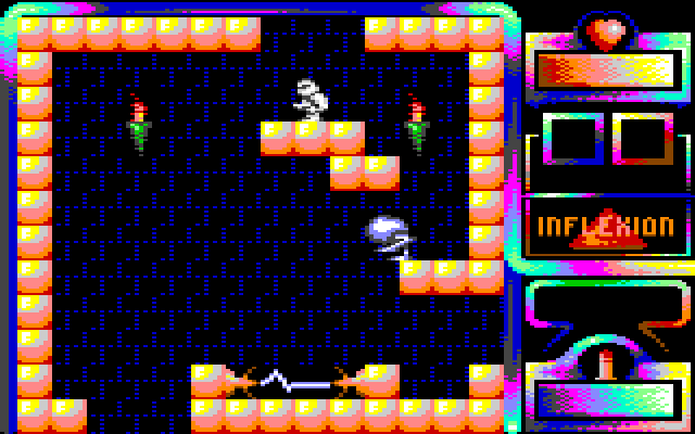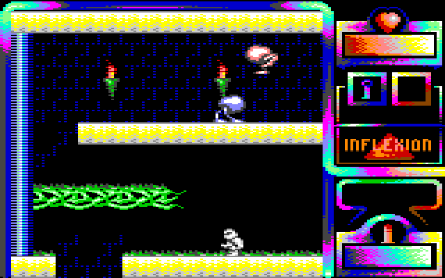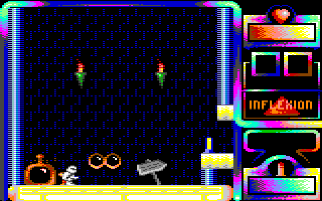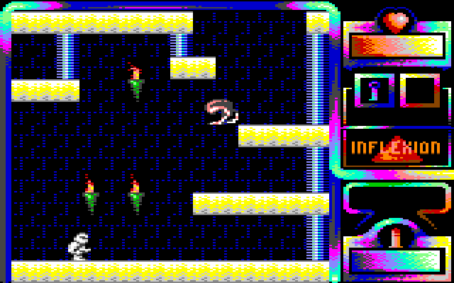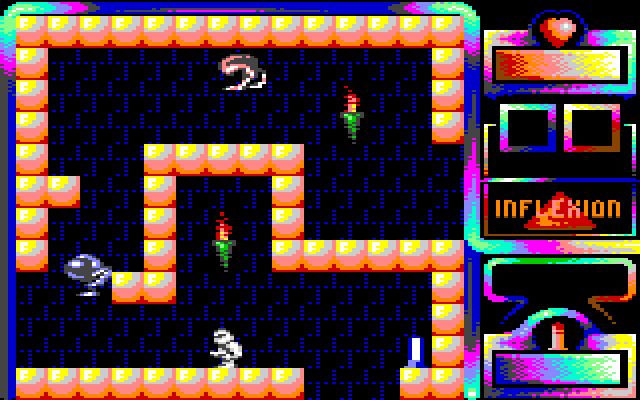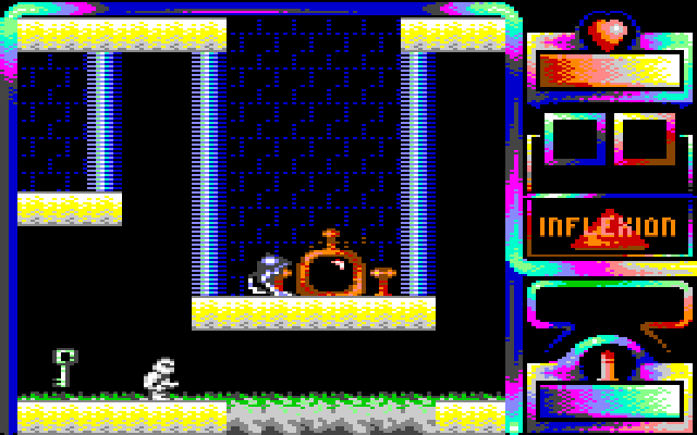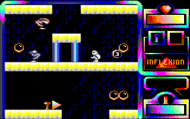 Une fois téléporté, vous devez trouver l’objet et vous frayer un chemin jusqu’au téléporteur de sortie. Sur votre chemin, vous rencontrerez des obstacles : des barrières électriques, qui vous blessent, et de l’eau qui vous tue instantanément. Vos ennemis sont deux robots (bleu et rose) qui tombent du ciel dans chaque écran peu après que vous y soyez entré. Les robots vous blessent lorsqu’ils vous touchent, mais vous pouvez les abattre avec votre fusil. Parfois, ils laissent derrière eux un bonus que vous pouvez ramasser pour obtenir plus de santé ou de munitions. Les robots marchent de gauche à droite sans réfléchir, mais ils peuvent tomber des plateformes.