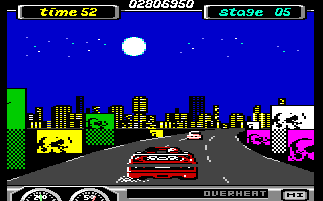 Il y a 16 étapes à travers les États-Unis, se déplaçant progressivement d’est en ouest, toutes représentées visuellement de manière différente. Tous les 4 niveaux, vous accédez à un écran d’achat, avec un choix d’améliorations. Comme le titre l’indique, vous disposez désormais d’un turbo booster, qui accélère la voiture, bien qu’une utilisation excessive puisse entraîner une surchauffe du moteur, et qu’il ne soit pas rechargé avant chaque section de l’atelier. Vous avez droit à cinq reprises, et si vous ne terminez pas le parcours dans le temps imparti, vous en perdez une.