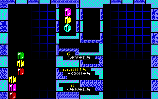 Le but du jeu est d’éliminer les gemmes en faisant correspondre trois ou plus de la même couleur horizontalement, verticalement ou en diagonale. Au fur et à mesure que les gemmes tombent, vous pouvez les déplacer de gauche à droite ou appuyer sur le feu pour les réorganiser. Créez des combos en cascade pour augmenter considérablement votre score, en gardant un œil sur les joyaux à venir afin de planifier à l’avance. Le jeu est terminé lorsque la colonne dans laquelle les gemmes arrivent est remplie.