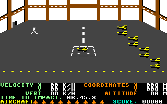 La première chose que vous verrez est le lancement d’un missile ; le jeu vous emmène ensuite dans votre hangar, d’où vous devez rapidement lancer autant de vaisseaux que possible, une tâche rendue difficile par la gravité limitée. Vous devez ensuite le piloter dans l’espace aérien soviétique dans une section de tir en vue latérale, où le fait de rester bas vous met à l’abri des radars, et où des réactions rapides vous permettent d’abattre les chasseurs ennemis et d’éviter les arbres.
