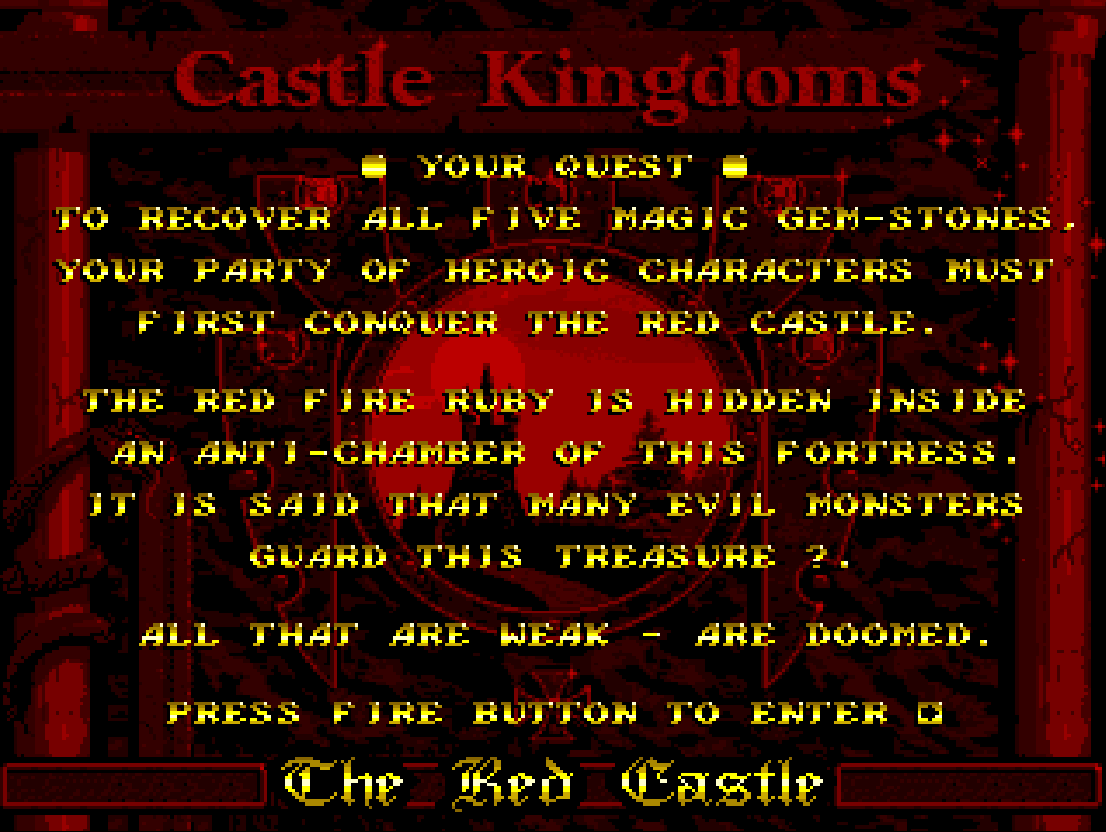 Il y a longtemps, un vieux sorcier a créé un talisman contenant cinq pierres précieuses. Le talisman a apporté la prospérité à la terre et ses habitants. Puis le seigneur des ténèbres a piégé le sorcier et a volé le talisman. Il l’a utilisé pour invoquer des hordes de créatures maléfiques. Les gemmes étaient cachées dans cinq châteaux et c’est maintenant à vous de les récupérer et de sauver le monde.