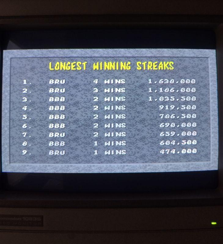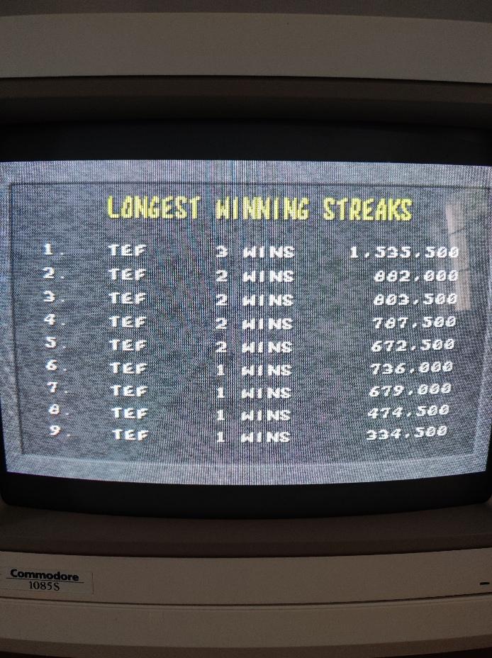 Et lors de la 3ème partie j’atteints les 1’600’000 pts et là je me dis « y a réellement un soucis » car malgré mes 2 victoires sur cette partie je trouve le score plutôt élevé sachant qu’avec WHDLoad en arrivant au même niveau de victoire j’ai fait dans les 787’500 pts (mon HOF).