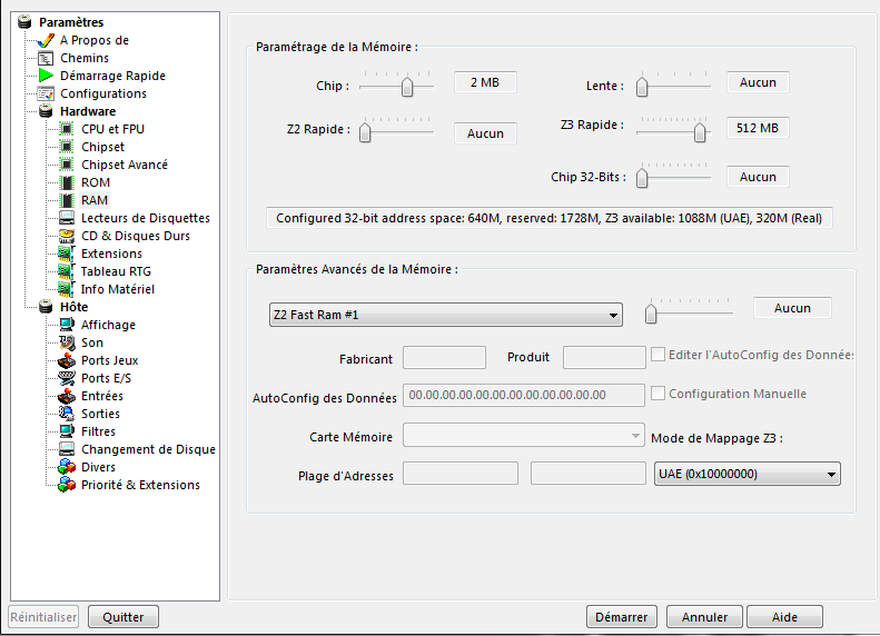Bon je deviens fou !!! J’ai activé l’option mémoire rapide Zorro III à 8 Mo & au lancement de FS-UAE j’ai un message me disant que pour cette option il faut un CPU 32 bits ?!