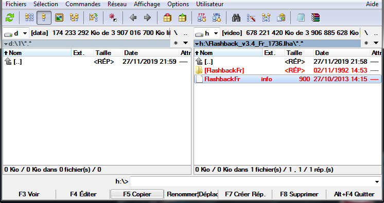 Regarde tes MP, j’ai copié Flashback sur l’HDF, boot sur celui la et lance flashback qui est dessusComme cela on sera fixé si cela vient de la méthode de décompression du lha.