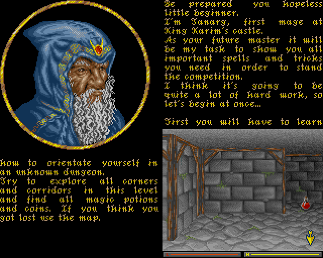 Le jeu est une combinaison étonnante d’un jeu de rôle de donjon traditionnel et d’un jeu multijoueur. Jusqu’à quatre joueurs peuvent s’affronter, ou laisser l’ordinateur être votre adversaire. Chaque joueur dispose d’un quart d’écran, dans lequel il peut voir sa position dans le donjon. Vous incarnez l’un des dix puissants mages, et votre objectif est de voler toute l’énergie vitale de vos adversaires, que vous pouvez voir sous chaque quart d’écran sous forme de barre rouge. Vous pouvez y parvenir en lançant plusieurs sorts ou en utilisant des artefacts magiques. Chaque sort coûte une certaine quantité d’énergie de test, représentée par la barre jaune. Elle se régénère après un certain temps. La partie se termine pour le joueur qui a perdu toute son énergie vitale. Le seul joueur qui reste est le vainqueur.