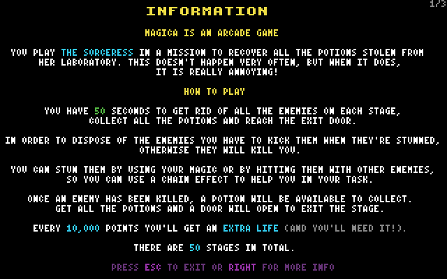 Concept: Reidrac (Juan J Martinez)Magica est un jeu de plateforme arcade sorti sur CPC en 2016 créé par Reidrac. Voici le portage Amiga par Andy Noble.