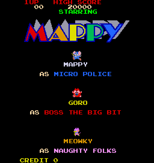 Le joueur incarne Mappy, une souris policière chargée de récupérer des objets volés dans un manoir qui sert de repaire à une bande de chats voleurs. Goro (Nyamco en japonais), grand et rouge, est le chef, tandis que les petits chats bleus Meowky (Mewky en japonais) sont ses subordonnés.