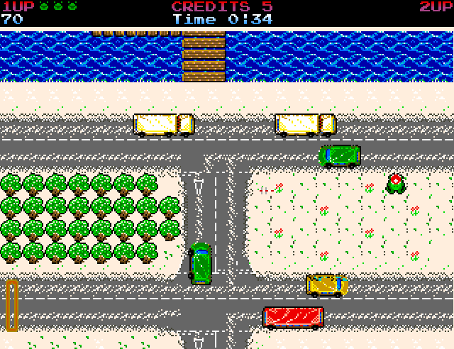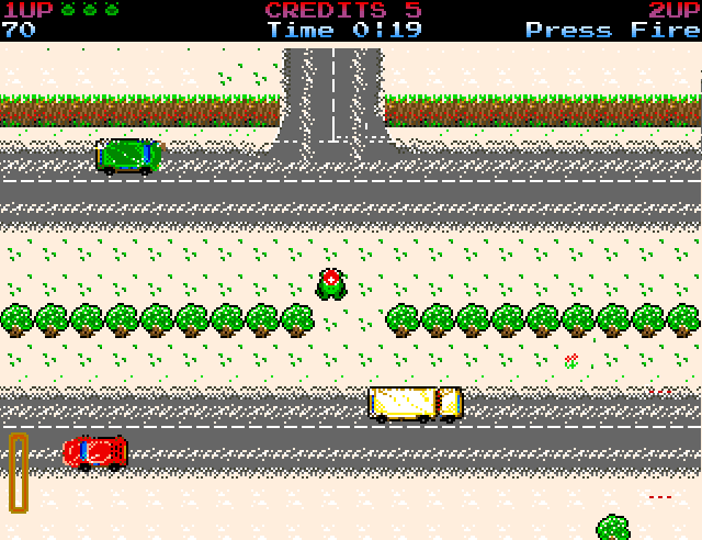 Il y a quelques corrections de bugs, mais il en reste encore beaucoup. La principale nouveauté est que Megafrog ne mange plus les voitures, mais leur tire dessus. Oui, le jeu comporte désormais un élément de shoot’em up vertical.