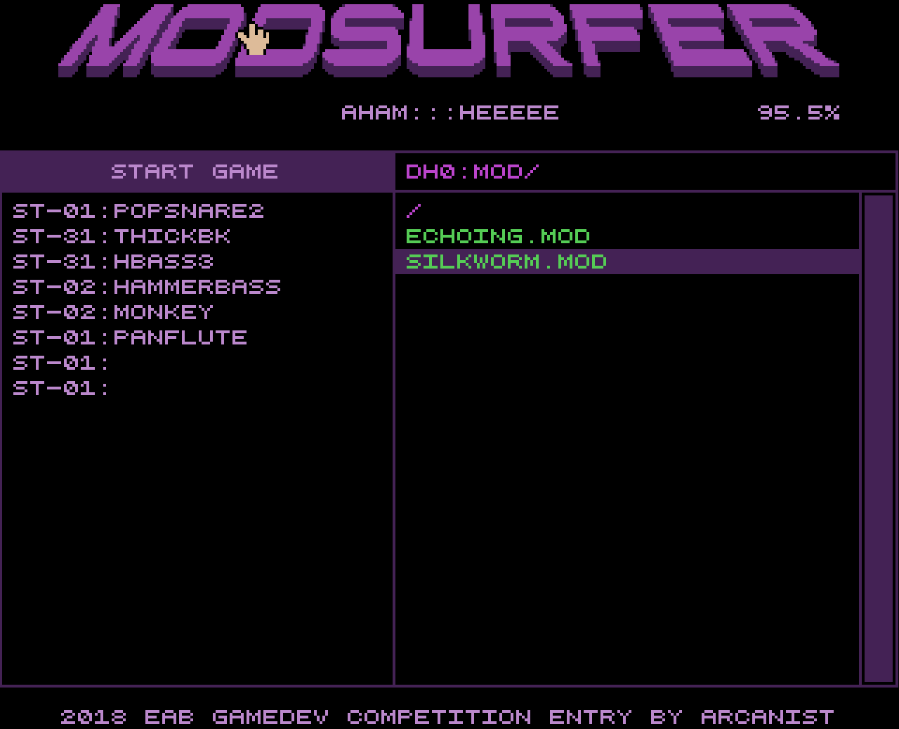 ModSurfer est un jeu de rythme présenté pour l’EAB Gamedev 2019. Les pistes sont générées par des algorithmes et fonctionnent avec des MOD non modifiés.
