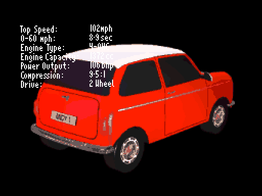 Version CD32: Vous pouvez afficher les caractéristiques de la voiture sélectionnée.