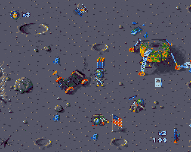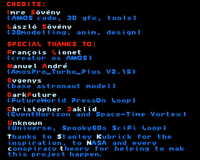 Gyagyagyerek et Sovenyimre nous propose un jeu d’action avec un gameplay à la Alien Breed/Chaos Engine. Le code source en Amos est disponible.