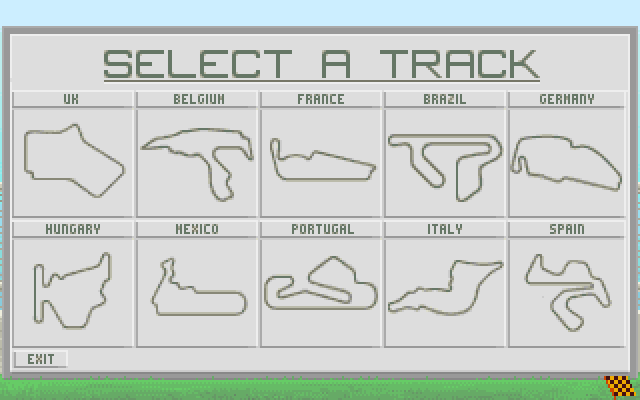 Une fois que vous avez cliqué sur le démarrage, vous êtes confronté à l’ÉCRAN DE SÉLECTION DE PISTES à partir duquel vous sélectionnez le circuit souhaité. Ces circuits sont des recréations authentiques de circuits du monde entier.