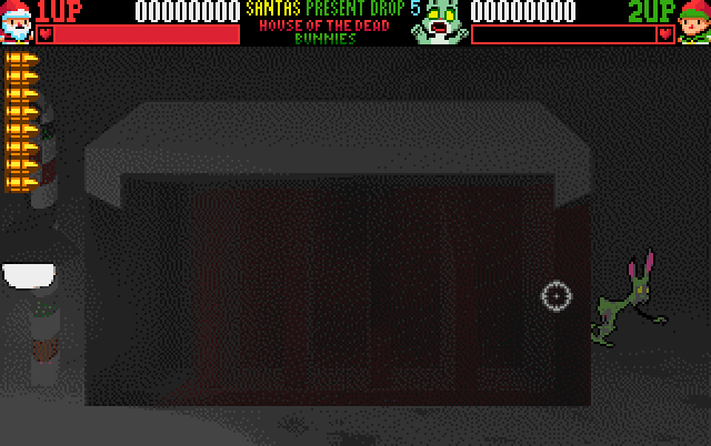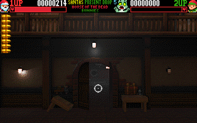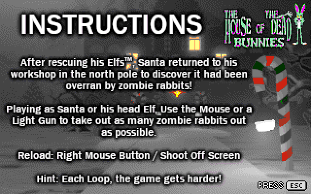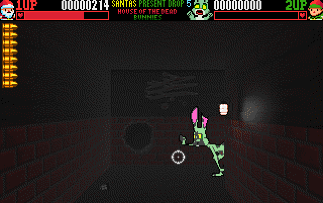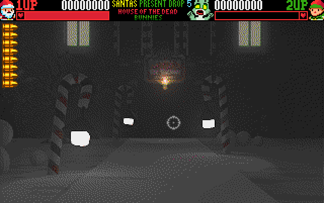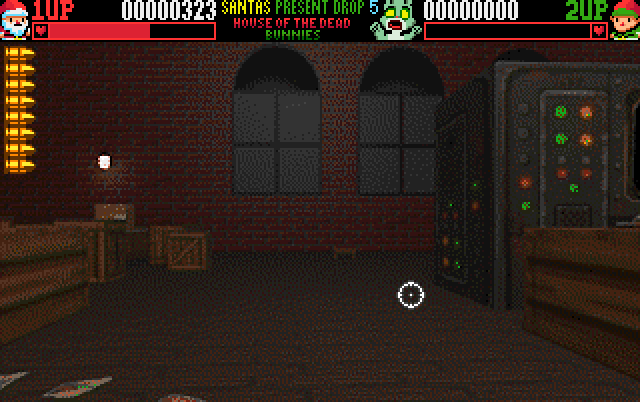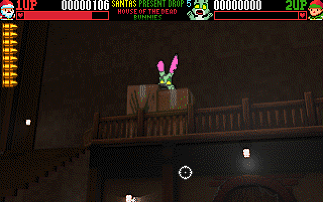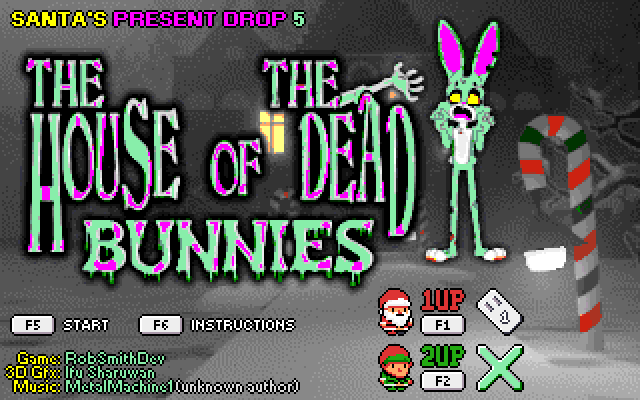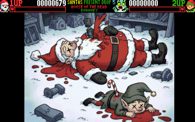 Pauvre Père Noël, à la fin de la quatrième partie l’année dernière, il avait réussi à sauver ses elfes (TM) du Grunch (TM), mais à son retour au pôle Nord, il a trouvé son atelier envahi par des lapins zombies ! En incarnant le Père Noël ou son elfe en chef, vous devez éliminer tous les lapins zombies afin que la production de jouets puisse continuer.