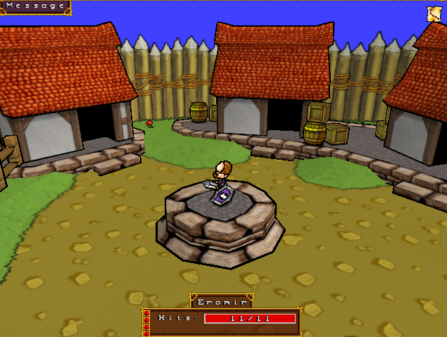 L’aventure commence dans le village. Vous pouvez échanger ici en vous tenant devant une porte d’entrée et en ouvrant l’inventaire. Il y a différents produits dans chaque maison. Si vous mourez, vous perdez de l’expérience, de l’argent et des clés et revenez au village. Vous pouvez éviter tout cela en achetant un trophée pour 1000 pièces d’or qui vous fera revivre immédiatement. L’aventure vous donne faim et si vous ne mangez pas longtemps, vous perdez la vie. La nourriture peut être achetée dans le village ou trouvée sur le chemin. Pour ouvrir les coffres au trésor, vous avez besoin de clés qui fonctionnent même lorsque les portes sont fermées. Vous pouvez également détruire des coffres, mais cela entraînera la perte de l’objet.