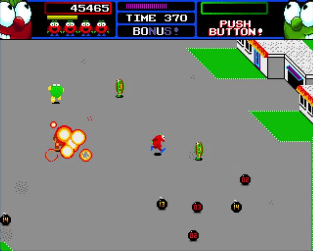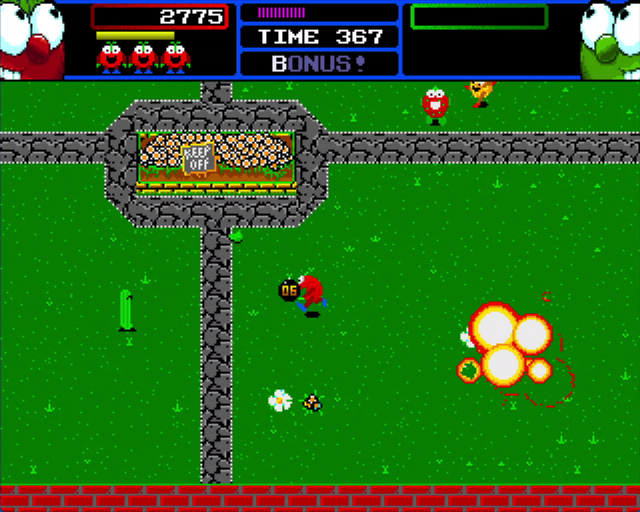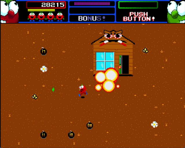 Le voyage ne sera pas facile. Nos héros doivent se frayer un chemin à travers quatre zones à plusieurs niveaux remplies de sbires de fruits et légumes mutés de Toxodyne, de guerriers des forces spéciales et de boss, jusqu’à ce qu’ils atteignent la confrontation finale avec le PDG de Toxodyne lui-même. Leurs armes principales sont les bombes à retardement qui apparaissent continuellement à chaque niveau et explosent au contact lorsqu’elles sont lancées sur les forces Toxodyne, mais en cours de route, le PVC leur enverra également diverses améliorations pour aider à la destruction.