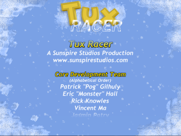 Tux Racer vous permet de jouer le rôle de Tux, le pingouin Linux, alors qu’il court dans des montagnes escarpées et enneigées. Participez aux coupes et remportez le titre! Tux Racer comprend diverses options de jeu, notamment la possibilité de faire des courses dans le brouillard, la nuit et par grands vents.