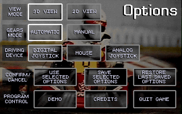 – Jouable avec un joystick numérique, une souris ou un joystick analogique. Les volants qui utilisent les entrées de la souris ou des palettes sont également supportés.