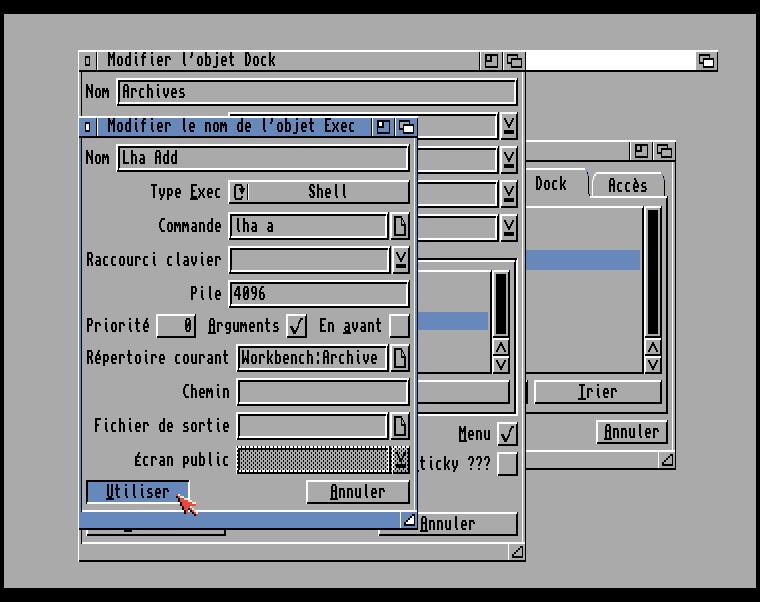 Arexx : pour lancer un script Arexx ( qui est un langage scripté assez puissant). Je vous invite à en apprendre plus sur lui ici.