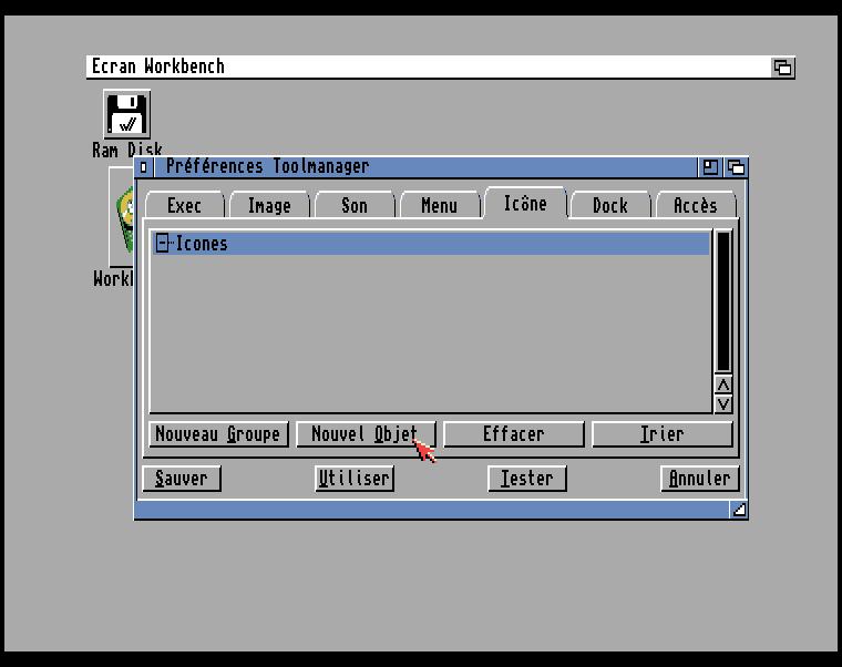 Tout comme son intitulé l’indique, vous allez pouvoir venir greffer différents programmes dans le menu » Outils » du Workbench. Deux limitations sont à prendre en considération. La première est le fait qu’aucun sous menu ne pourra être ajouté. La seconde est que seul le menu du Workbench sera utilisable en l’état.